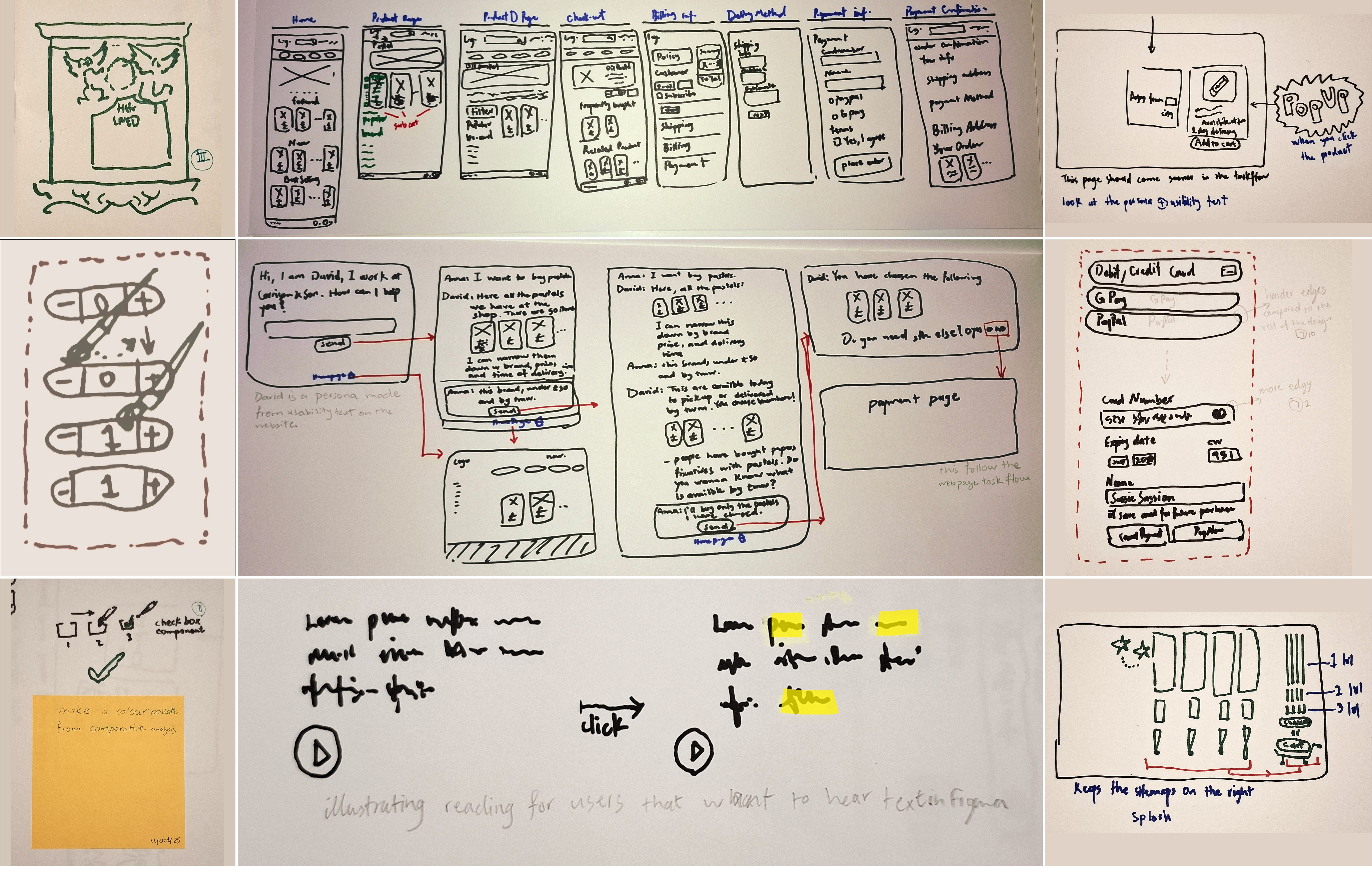 After the interviews and having the personas, I got a better sense to designate the purchasing task flow and sketch its pages.